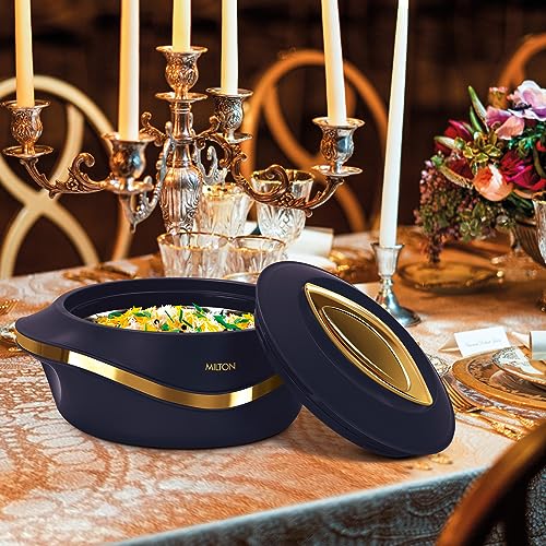 Double walled Inner stainless-steel casserole keeps food hot and fresh for hours. The Exclusive metallized foil, unique design and elegant shape enhances your dining décorum and thus makes it a must-have casserole for your home.